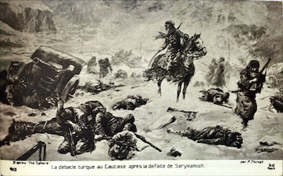 Precise figures for Turkish losses at Sarıkamış remain uncertain. The official history of the Turkish Army estimates total casualties at approximately 60,000 men, drawing partly on Russian sources that reported 7,000 prisoners and 23,000 Turkish fatalities. This figure includes roughly 10,000 deaths in the XI Corps sector and a further 20,000 losses behind the front lines, caused by exposure, disease, and exhaustion rather than direct combat.
